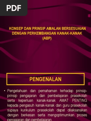 Amalan bersesuaian dengan perkembangan kanak kanak abp. Amalan yang bersesuaian bermaksud mengambilkira tentang bagaimana perkembangan kanak kanak belajar dan berpadanan dengan kandungan dan strategi yang dirancang untuk kanak kanak dalam program pendidikan awal kanak kanak. Namun begitu hal ini masih tidak dikaitkan lagi dengan teori kognitif yang turut membincangkan perkaitan dengan perkembangan psikologi kanak kanak. Buku ini disusun berdasarkan prinsip amalan yang bersesuaian dengan perkembangan kanak kanak abp. Amalan bersesuaian dengan perkembangan kanak2 abp slideshare uses cookies to improve functionality and performance and to provide you with relevant advertising.