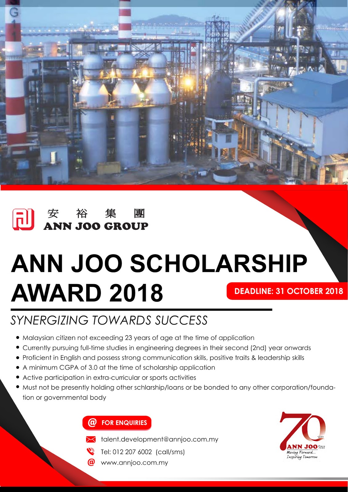 A good number of employees have been with ann joo for at least 20 years lending their experience and expertise towards achieving the group s goals and objectives. Ann joo steel berhad. Ann joo steel berhad is committed to excel as a highly efficient and profitable organization with well established and effective networking preferred for its competitive advantage and recognized in the industry for its management excellence and resourcefulness with capabilities and competencies for value creation in downstream activities the company was the first integrated steel mill in. Jobs in george town penang at jora create free email alerts and never miss another career opportunity again.