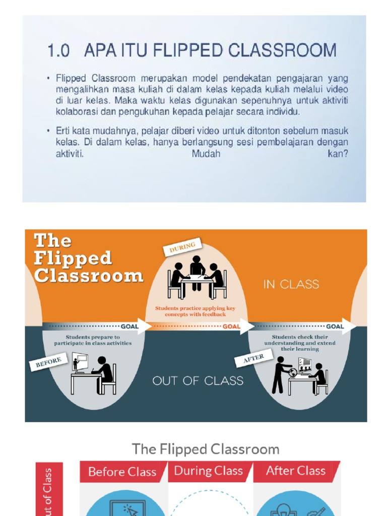 Reach every student in every class everyday di situ tertulis bahwa konsep flipped classroom adalah aktivitas yang biasanya dilakukan di kelas kini diselesaikan di rumah dan sebaliknya. Apakah flipped classroom itu. Inilah yang dinamakan flipped classroom. Flipped classroom merupakan inovasi pembelajaran dimana peserta didik mempelajari konten belajar di luar kelas atau di rumah secara mandiri kemudian melakukan diskusi atau active learning di kelas.