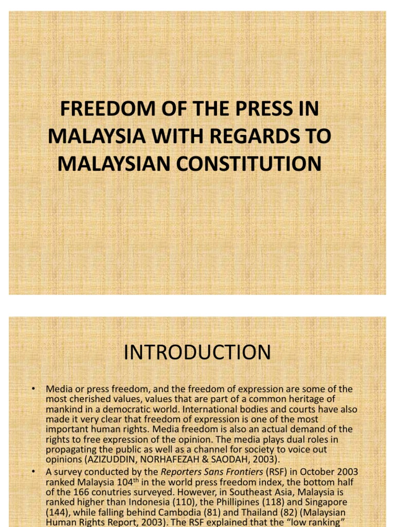 8 the provisions of this article shall apply to the federal territories of kuala lumpur and putrajaya in the like manner that they apply to a state save that clause 1 in its application to the federal territories of kuala lumpur and purtrajaya shall be modified to read that any land in the federal territory of kuala lumpur or the federal territory of putrajaya which immediately before. It is drafted by reid commission that headed by lord william reid in order to formulate a constitution for the preparation of a fully self governing and independent federation of malaya. However it was not practised efficiently in the case of beatrice fernandez v sistem pernerbangan malaysia. The constitution of the federation of malaya is the foundation of the federal constitution of malaysia today.