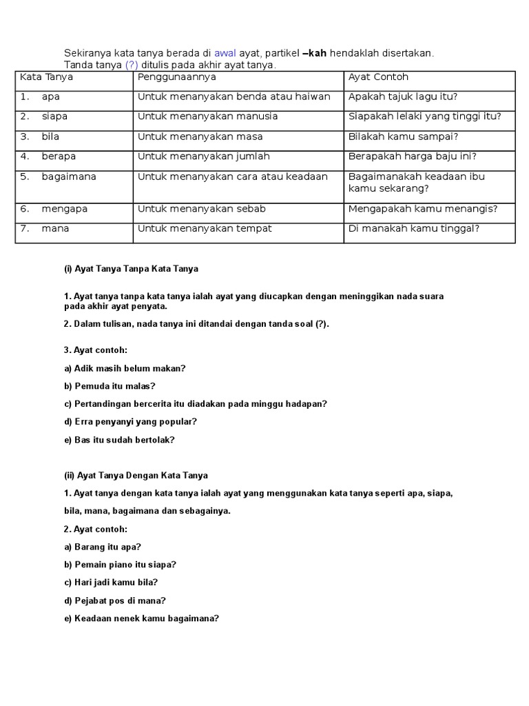 Menyatakan penggunaan kata tanya dalam ayat. Ayat tanya dengan kata tanya a i. Ayat tanya tanpa kata tanya mp3 mp4 download lagu ayat tanya tanpa kata tanya mp3 dapat kamu download secara gratis di download lagu best in the word 2020. Selain itu sama seperti apakah yang berasal dari perkataan apa.
