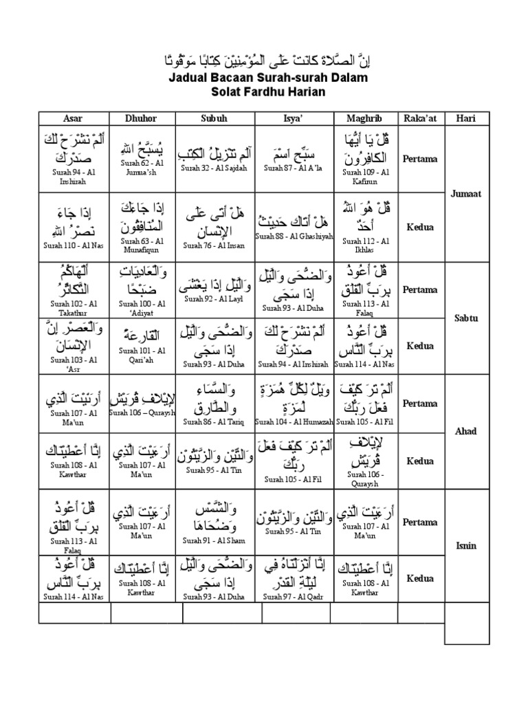 Di antara bacaan sholat fardhu sekaligus urutan tata cara sholat fardhu adalah sebagai berikut. Artikel jadwal bacaan surat dalam shalat fardhu 5 waktu ini diposting oleh joy johari pada hari sabtu 27 desember 2014. Bantuan audio juga disediakan supaya dapat membantu anda menyebut dengan betul. Melaksanakan sholat haruslah dilakukan dengan khusyu dan tepat waktu sesaat setelah adzan dikumandangkan.