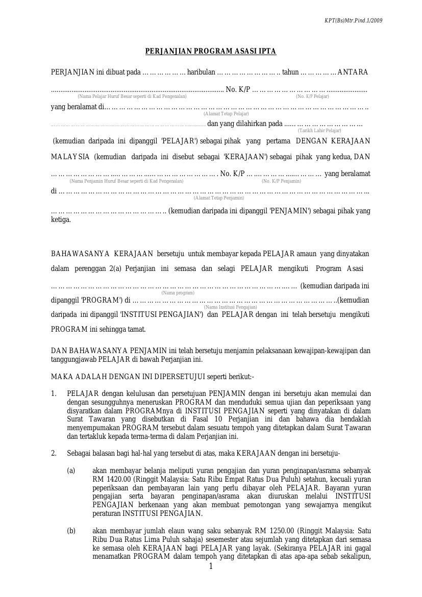 Borang perjanjian asasi ipta 2020. Dokumen perjanjian yang telah lengkap hendaklah diserahkan semasa hari pendaftaran. Panduan mengisi borang perjanjian dokumen perjanjian yang lengkap hendaklah diserahkan semasa hari pendaftaran tuntutan bayaran pelajar asasi sedia ada akan dibuat melalui pihak pentadbir ua masing masing pada setiap semester. Kita sudah memasuki tahun 2020 dan pastinya sesi pengajian untuk kemasukan ke universiti awam telah bermula. Ii bantuan kewangan kpm asasi ipta kpm juga memperkenalkan bantuan kewangan bagi golongan sasaran iaitu b40 dan m40.