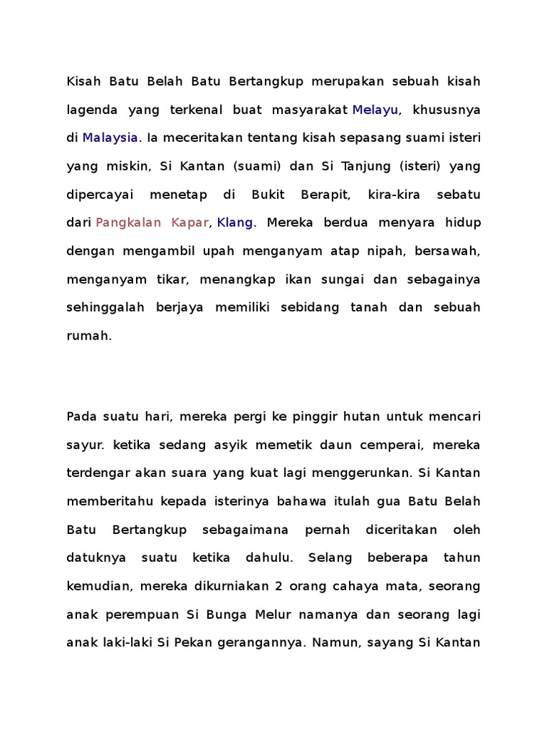 Buku cerita batu belah batu bertangkup. Kisah batu belah batu bertangkup merupakan sebuah kisah lagenda yang terkenal buat masyarakat melayu batu belah batu bertangkup mendapat nama sempena sebuah bongkah batu besar yang pada lagendanya mempunyai ruang mulut yang ternganga dan terbuka seperti sebuah gua atau batu terbelah dua namun mengeluarkan suara yang kuat dan menyeramkan dikatakan ia telah menelan ramai manusia yang memuja. Atu belah atu bertangkup nge sawah pejaying te masa dahulu. Batu belah batu bertangkup mendapat nama sempena sebuah bongkah batu besar yang pada lagendanya mempunyai ruang mulut yang ternganga dan. Batu belah batu bertangkup isbn.