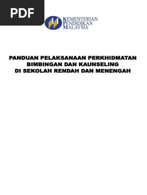 Buku panduan pelaksanaan perkhidmatan bimbingan dan kaunseling di sekolah rendah dan menengah. Bimbingan dan kaunseling bab 1 pengenalan kaunseling definisi kaunseling. Pepatah mengatakan orang berbudi kita berbahasa. Melalui buku panduan penerbitan ini dengan sendirinya buku panduan pelaksanaan perkhidmatan b k sebelum ini adalah terbatal. 1 5 2 melaksanakan program mentor mentee sebagai aktiviti rasmi sekolah mengikut.