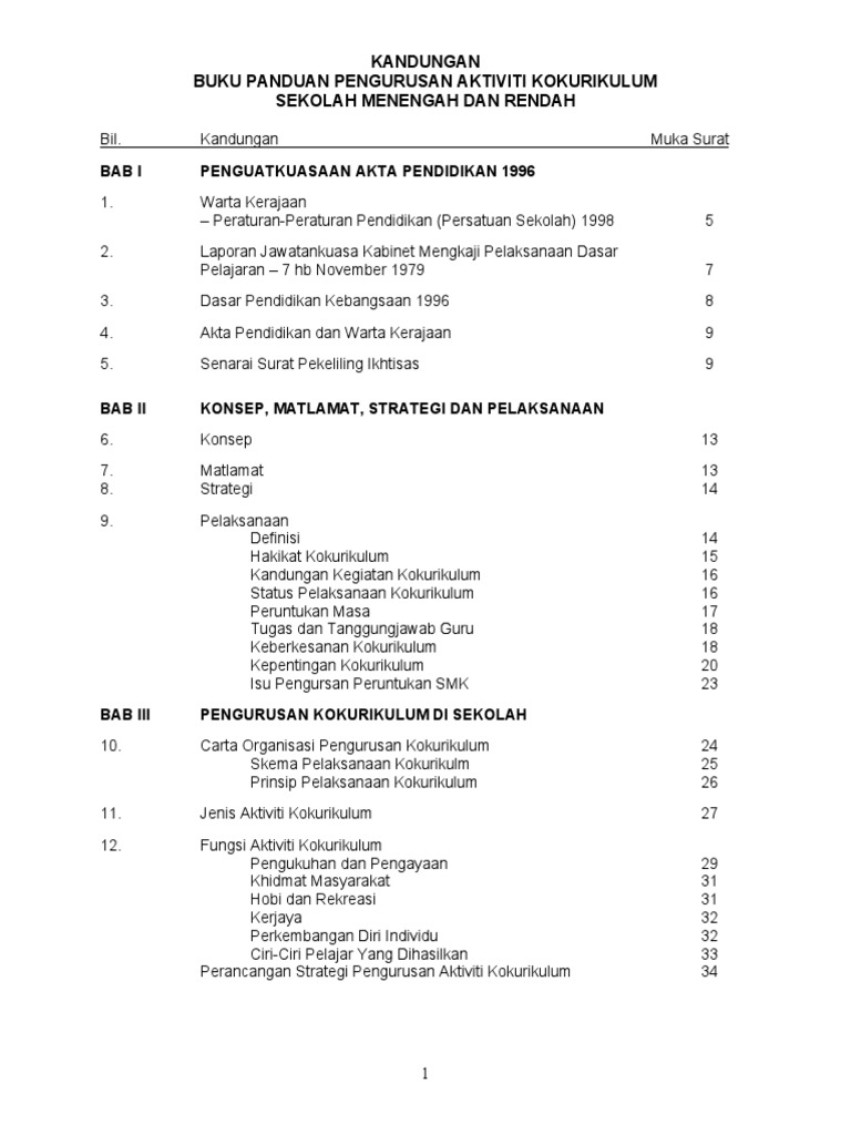 Kandungan muka surat bab i penguatkuasaan akta pendidikan 1996 1. Buku panduan pengurusan aktiviti kokurikulum sekolah rendah dan sekolah menengah. Turut disertakan contoh surat menyurat perancangan rekod kehadiran dan laporan. Klik sahaja button share tersebut.