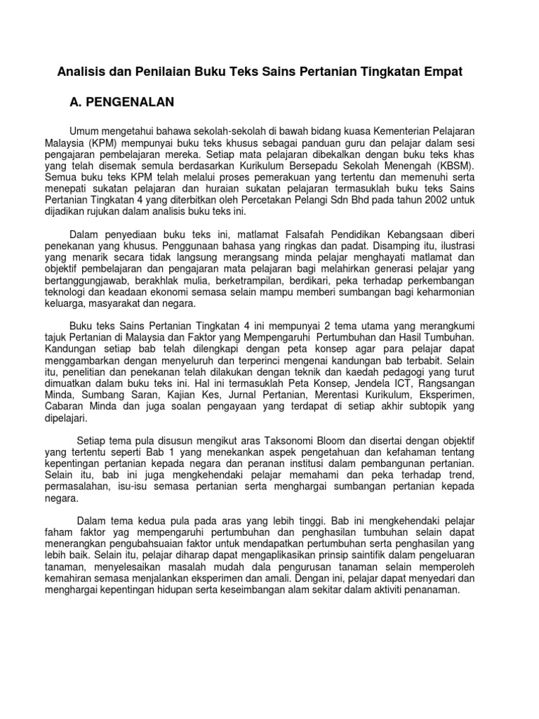 Selari dengan perkembangan pesat teknologi digital kementerian pendidikan malaysia akan menggunakan teknologi dan kandungan digital dalam dalam bidang pendidikan. Buku teks digital pertanian kssm tingkatan 4. Buku teks digital sains sukan kssm tingkatan 4. 1pengenalanbuku teks sains pertanian tingkatan 4 ini diterbitkan pada tahun 2002 dan ia telah melalui beberapaproses pemerakuan yang tertentu di peringkat kementerian demi menjaga kualiti buku ini sepertibahagian buku teks kementerian pendidikan malaysia jabatan pendidikan islam dan jabatanpendidikan teknikal.