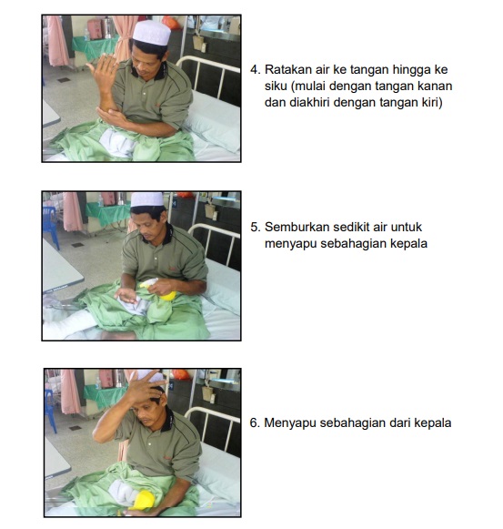 Tetapi secara asasnya mandi wuduk untuk orang sakit adalah seperti biasa cuma dikecualikan bahagian yang sakit tak boleh kena air tersebut dari dibasuh. Kalau dia tidak bersuci dengan air karena lemahnya atau takut akan tambah sakit atau akan memperlambat sembuhnya maka hendaknya ia bertayammum baik untuk hadats kecil maupun hadats besar. 1 cara amil air sembahyang guna kain basah 2 cara ambil air sembahyang dengan spray. Takkanlah dia perlu mengulangi solat itu semula.