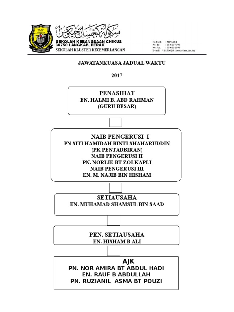 Asma bt ali naib pengerusi. 5 3 3 organisasi sekolah organisasi sekolah merupakan unit unit kecil yang dibuat untuk menyelaras pelbagai program dan aktiviti sekolah sama ada kurikulum dan ko kurikulum. Penyelaras puan ngu mee ing penolong kanan pentadbiran. Laporan plc ke ppd.