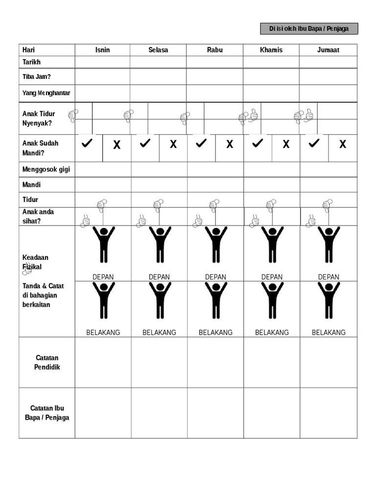 Buku log harian ini amat sesuai dimiliki oleh setiap kanak kanak di taska tadika dan pusat jagaan serta diisi oleh pembimbing awal kanak kanak dan juga kerjasama daripada ibubapa. Selain daripada mencatatkan aktiviti harian di taska buku log juga bertujuan untuk melibatkan ibubapa dalam konteks mengambiltahu perkara yang berlaku kepada anak anak mereka sepanjang hari di taska. 1 rutin harian kanak kanak 2 aktiviti dalam 3 aktiviti luar 4 pemeriksaan fizikal termasuk suhu badan 5 peralatan 6 pemeriksaan kesihatan 7 tingkah laku 8 kemalangan kecederaan 9 dll. Bayangkan jika ada 20 orang kanak kanak di taska atau tadika kita kena berbelanja rm240 rm400 untuk setiap 3 bulan.