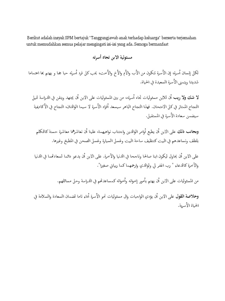 Contoh contoh karangan insyak bahasa arab pt3 spm sijil pelajaran malaysia. My family call me lisa at home and my companions call me elza at school.