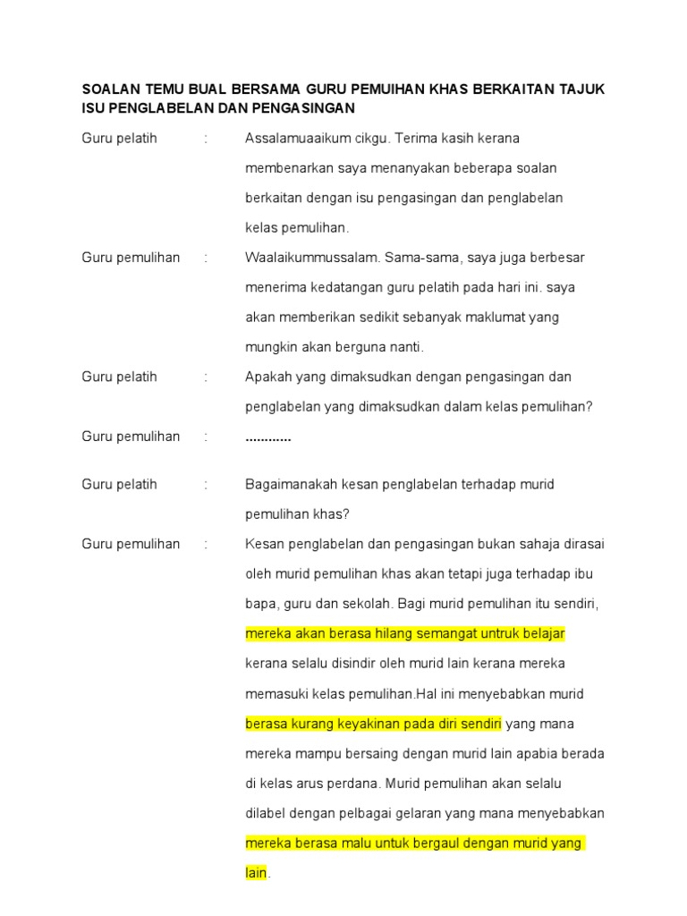Contoh soalan temubual guru pendidikan khas. Apakah jawatan yang tuan sandang sekarang. Pembentangan hasil projek formatif. Academia edu is a platform for academics to share research papers. Apabila diajukan soalan bagaimana untuk menjadi guru cemerlang beliau sering mengucapkan bahawa guru perlu kreatif dan inovatif.