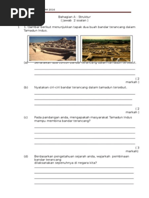 Setiap rumah mempunyai bilik mandi. Tamadun indus tidak meninggalkan maklumat dan sumber yang jelas tentang organisasi sosialnya menurut jumpaan arkeologi masyarakat lembah indus terbahagi kepada dua golongan iaitu golongan atasan dan bawahan golongan atasan terdiri daripada pendeta dan pedangang kelas atasan utama ialah pendeta para pendeta mempunyai kuasa dan pengaruh besar dalam mengawal aktiviti masyarakat terutamanya. 12 rajah 2 berkaitan pertembungan tamadun islam dengan tamadun lain di dunia. Nyatakan dua ciri keistimewaan bandar tersebut.