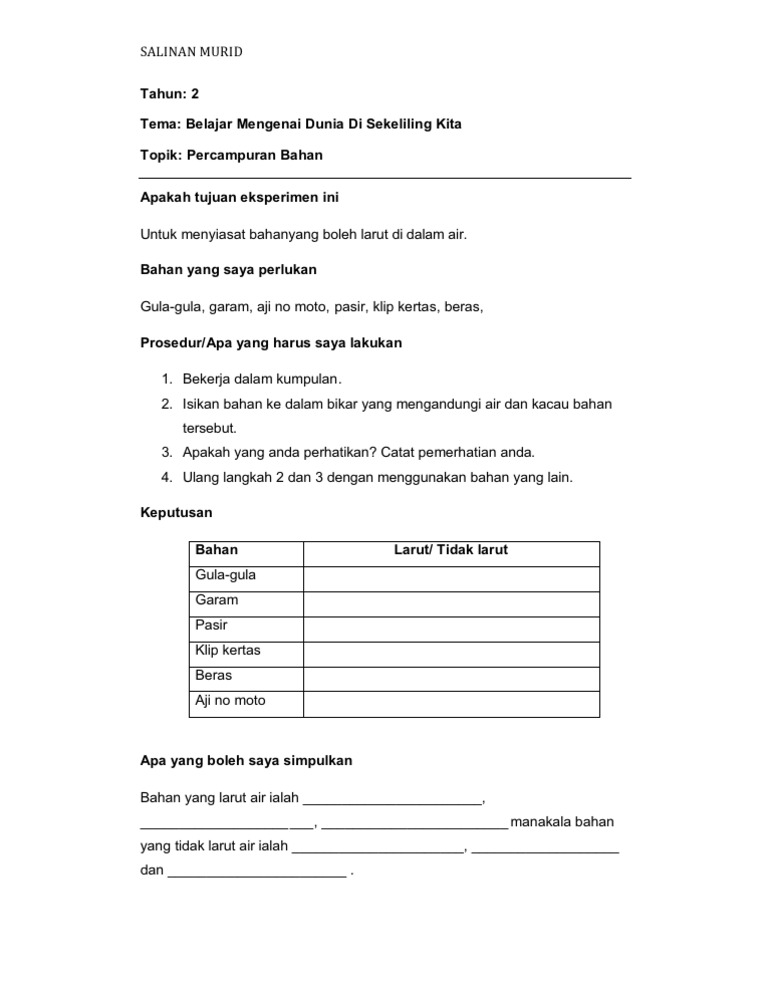 Add to my workbooks 0 download file pdf add to google classroom. Pendedahan awal murid murid tabika tadika dan prasekolah. Saya menerangkan langkah membuat ekperimen dan langkah keselamatan semasa membuat eksperimen. Memperkenalkan bahan yang perlu ada untuk eksperimen bahan yang larut dan tidak larut uii serious nye muka ain nih macam tak puas ati je mukanye.