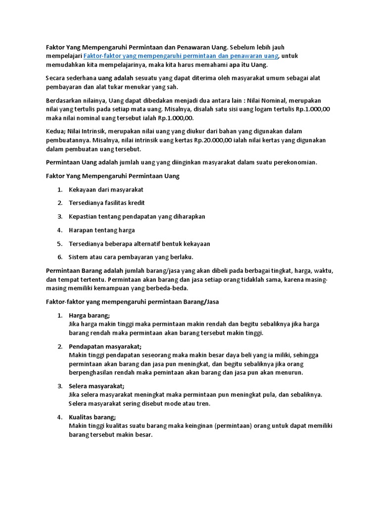 Faktor Yang Mempengaruhi Permintaan Dan Penawaran Uang