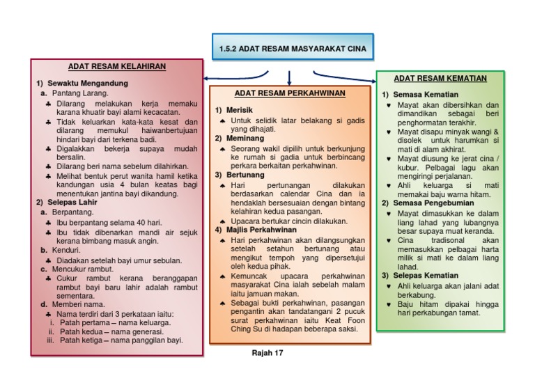 Adat resam kaum cina 2. Walau bagaimana pun kaum cina juga sangat fleksibel dan mudah untuk didekati dan beramah mesra. Pada asasnya adat resam perkahwiwan masyarakat cina merangkumi peringkat merisik meminang bertunang dan majlis perkahwinan. Wanita hamil tersebut akan dipakaikan sebentuk gelang tangan baru yang dikenali sebagai suulkaappu.