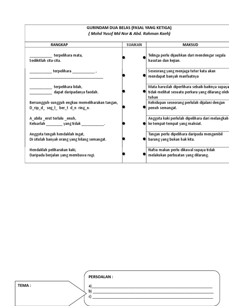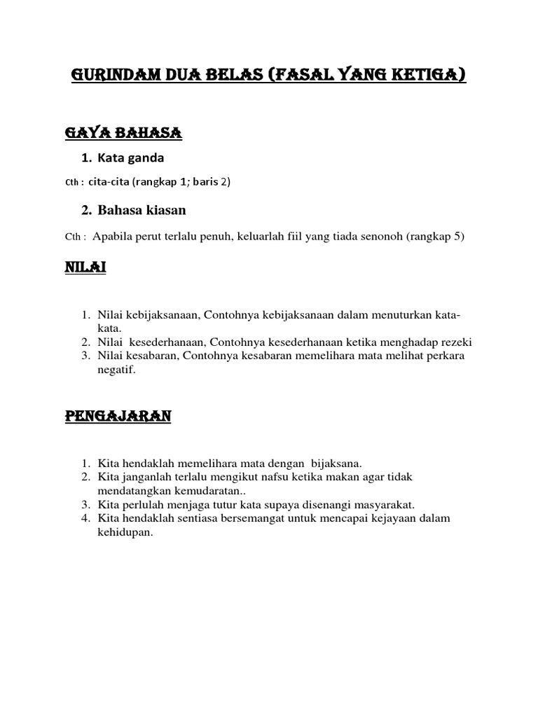 Maksud gurindam tema persoalan bentuk gaya bahasa nilai pengajaran soalan peperiksaan skema jawapan contoh soalan jawapan. Gurindam dua belas fasa yang ketiga. Jelaskan dua nilai yang anda peroleh dalam gurindam tersebut. Penglihatan yang dijaga akan mengurangkan keinginan terhadap perkara perkara yang negatif.