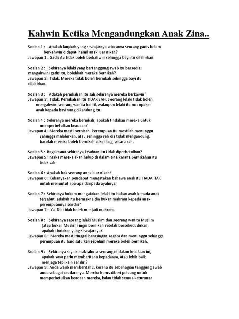 Berdasarkan kenyataan ini perkahwinan ini adalah tidak sah. Bila dapat tahu anak mengandung anak luar nikah cepat cepat dikahwinkan. Oleh sebab itu imam abu hanifah berpendapat perkahwinan tersebut adalah sah tetapi lelaki itu tidak boleh menyetubuhi isterinya yang sedang mengandungkan anak luar nikah benih lelaki lain sehingga selepas isteri itu melahirkan anak tersebut al fatawa al hindiyah jil. Mungkin anak itu akan lahir selepas enam bulan menjadikan dia anak sah taraf.