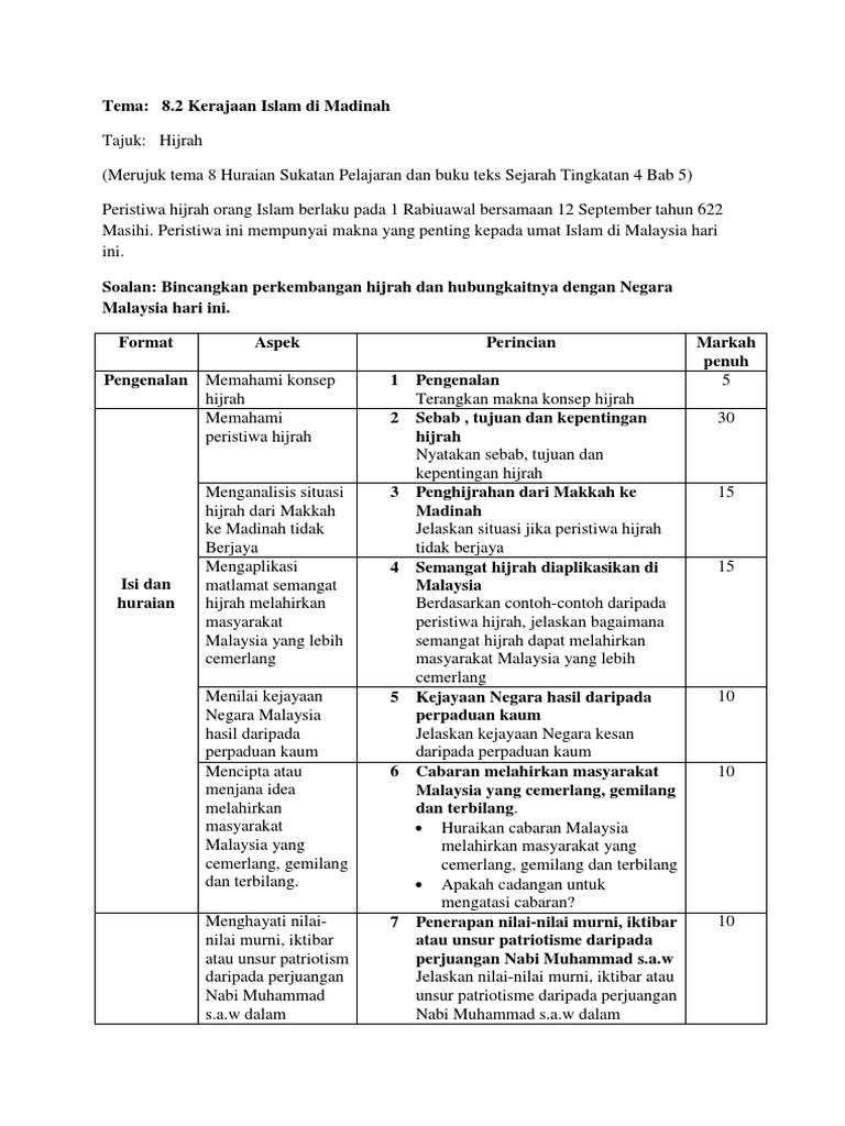 Sila klik link disetiap tajuk untuk mendapatkan nota ringkas setiap bab berkaitan dari 1 hingga 10. Skema jawapan kerajaan islam di madinah cadangan jawapan sejarah kertas 3 tingkatan 4 bab 5 soalan. Nyatakan nilai nilai murni iktibar patriotisme daripada peristiwa hijrah. Takwim atau kalendar adalah satu perkara penting dalam ajaran agama islam kerana banyak urusan ibadah dikaitkan dengan bulan dan hitungan tahun.