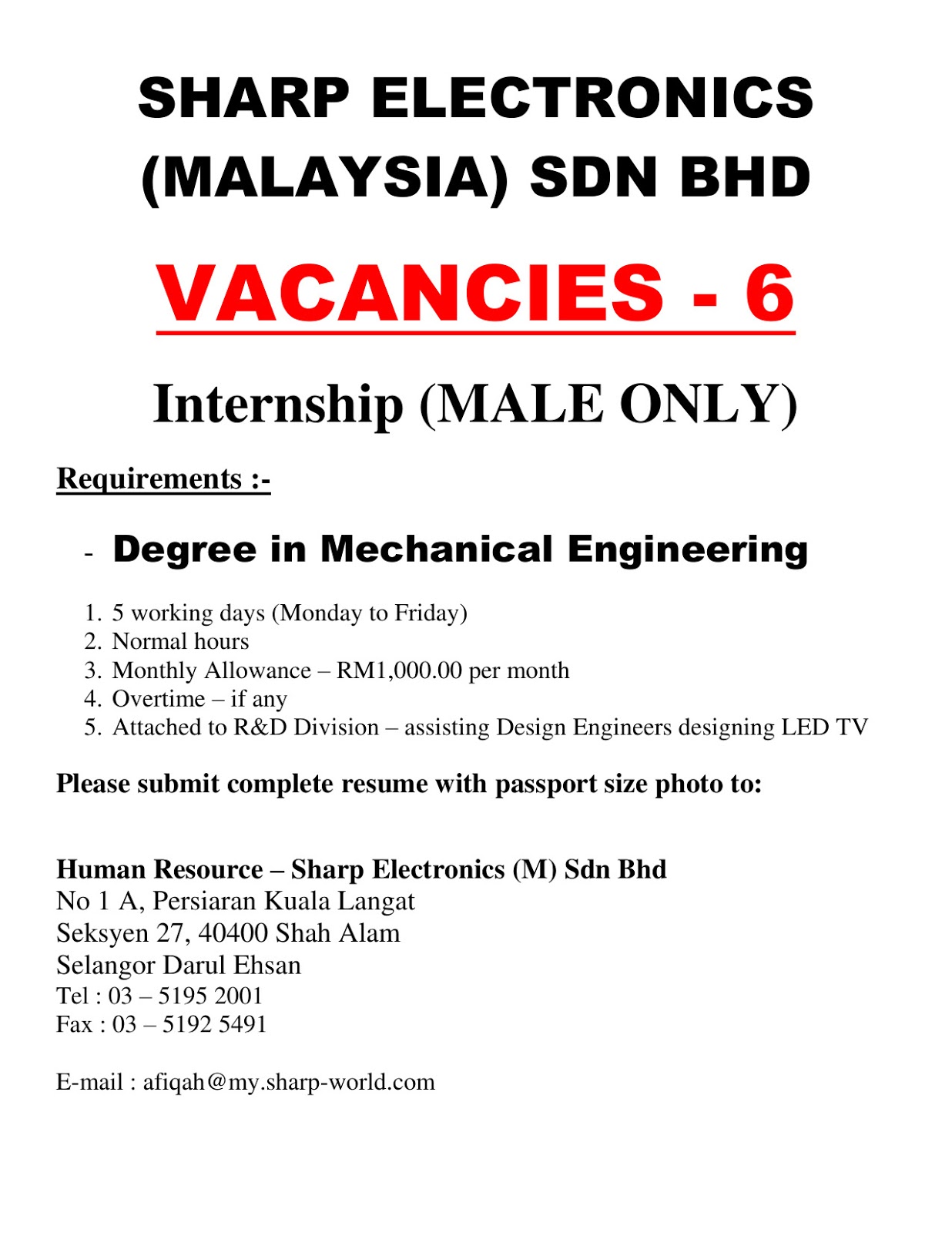 Currently pursuing diploma degree in mechanical engineering or electrical engineering b. Mechanical engineering jobs in malaysia filter. Klang port klang myr 600 1k monthly. New internship for mechanical engineering students jobs in malaysia available today on jobstreet quality candidates quality employers.