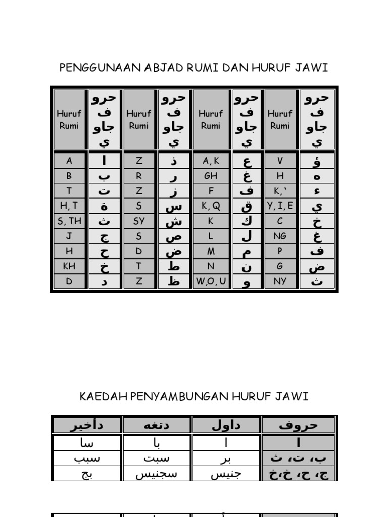 Jadual Huruf Jawi Ke Rumi