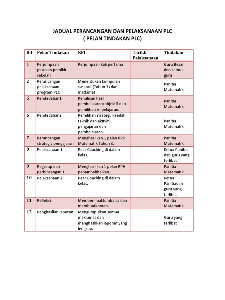 Tarikh tanggungjawab bil pelan tindakan kpi pelaksanaan. Privasi anda halaman ini menerangkan dasar privasi yang merangkumi penggunaan dan perlindungan maklumat yang dikemukakan oleh pengunjung. Contoh jadual perancangan pelaksanaan plc di sekolah 2019. Perjumpaan pasukan pemikir sekolah perancangan pelaksanaan program plc pendedahan1.