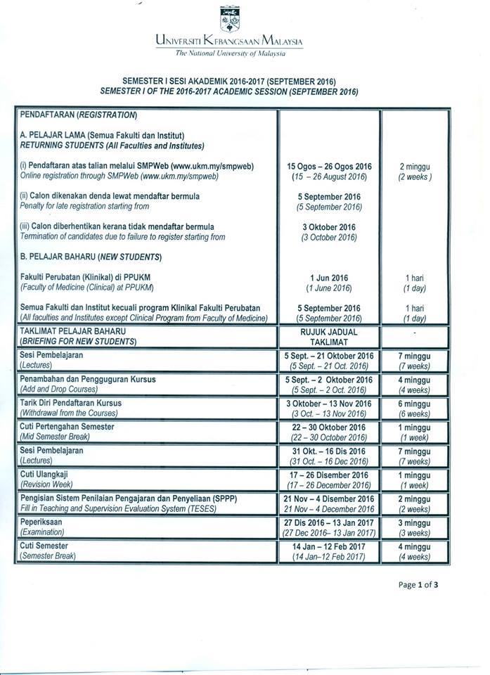 Academic calendar amendments for session ii and iii 2019 2020 senate 256 covid19 outbreak control. Universiti kebangsaan malaysia 43600 bangi selangor malaysia. 21 35 kalendar akademik no comments. Pusat kembangan pendidikan aras 2 bangunan wawasan universiti kebangsaan malaysia 43600 ukm bangi selangor 03 8921 5331 03 8925 1391.