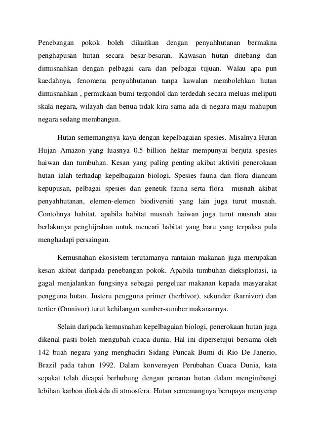 Karangan kesan penerokaan hutan terhadap alam sekitar. Selain itu pendidikan alam sekitar juga telah dipraktikkan dalam usaha mengawal aktiviti penebangan hutan langkah ini telah dilaksanakan dalam dua peringkat iaitu formal dan tidak formal kurikulum formal diajar dalam geografi dan subjek lain untuk meningkatkan kesedaran pelajar terhadap kepentingan hutan padaperingkat tidak formal aktiviti yang diadakan adalah dalam bentuk kempen kesedaran. Kegiatan melombong bijih timah. Penerokaan hutan secara tidak terancang telah menyebabkan berlakunya tanah runtuh. If you continue browsing the site you agree to the use of cookies on this website.