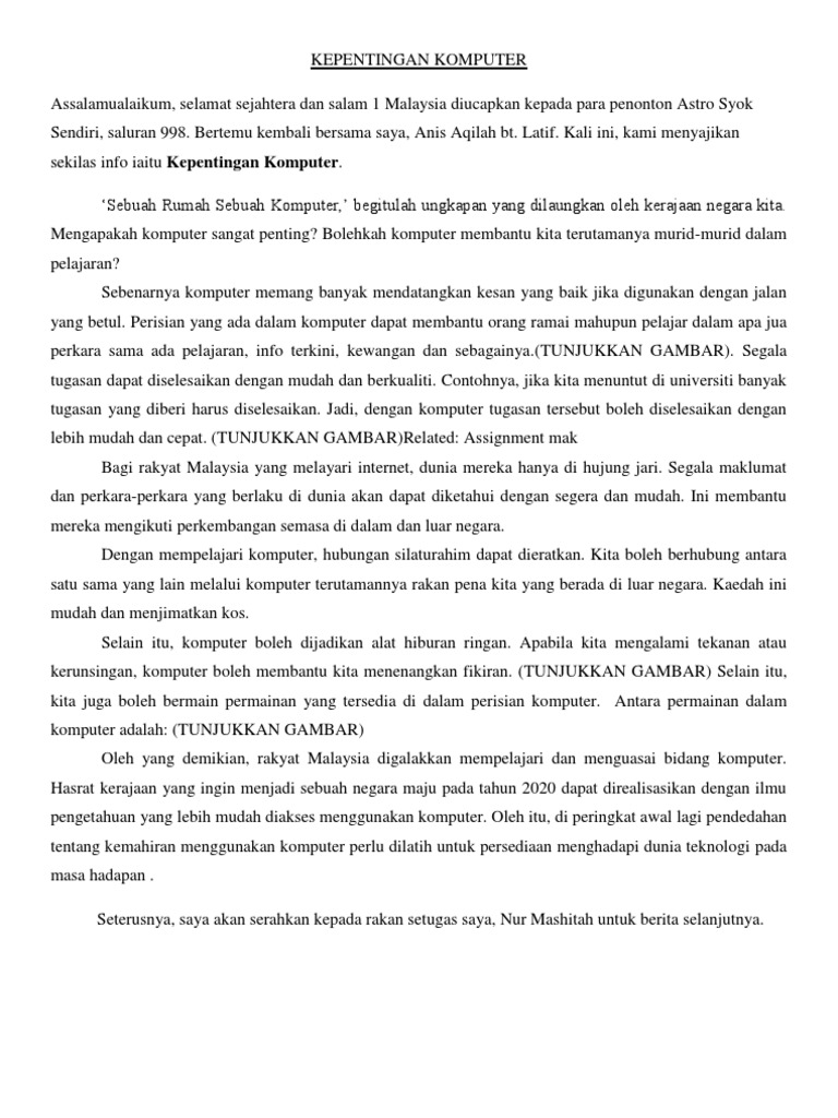 Pertama komputer dapat membantu murid menyiapkan tugasan dengan cepat dan mudah. Zaman beralih musim berubah fasa demi fasa perubahan dunia telah berlaku. Huraikan pendapat anda tentang kebaikan teknologi maklumat dan komunikasi ict kepada masyarakat dan negara. Kebaikan dan keburukan komputer pada zaman sekarang yang mordern saya pasti kebanyakan daripada kamu semua memiliki sebuah komputer di rumah masing masing.