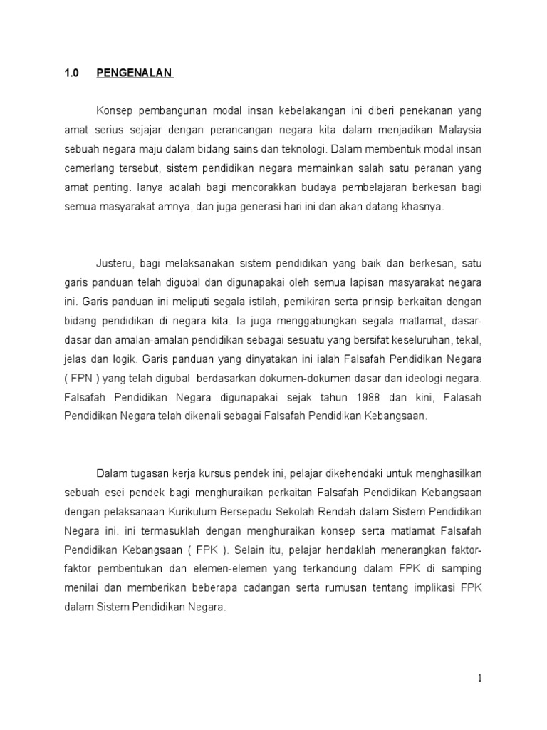 Umum mengetahui bahawa falsafah pendidikan negara yang dirumuskan pada tahun 1988 dan disebut dalam akta pendidikan 1996 berbunyi. Falsafah pendidikan kebangsaan ini akn menjadi suluh yg memberipedoman inspirasi kpd segala usaha pendidikan sama ada di dalaminstitusi pendidikan atau luar. Falsafah pendidikan kebangsaan fpk dapat dijelaskan sebagai satu usaha berterusan kearah perkembangan lagi potensi individu secara menyeluruh dan bersepadu untuk mewujudkan insan yang. Sehubungan dengan itu tranformasi pendidikan juga dapat dilakukan dengan memantapkan sistem pendidikan negara berasaskan falsafah pendidikan kebangsaan fpk.