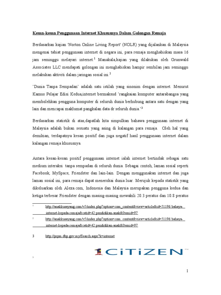 Kesan negatif penggunaan internet dan media terhadap pengguna di malaysia. Mempunyai 644 1 milion pengguna internet dan 305 9 milion adalah pengguna aktif media sosial. Kerjasama daripada semua pihak adalah perlu agar kesan baik penggunaan internet tidak ditutupi oleh keburukan internet tersebut. Kesimpulannya pihak ibu bapa perlu mengawasi anak anak mereka semasa melayari laman web di internet. Tentang kesan negatif penggunaan media sosial terhadap anak anak dengan kawalan social h 0.
