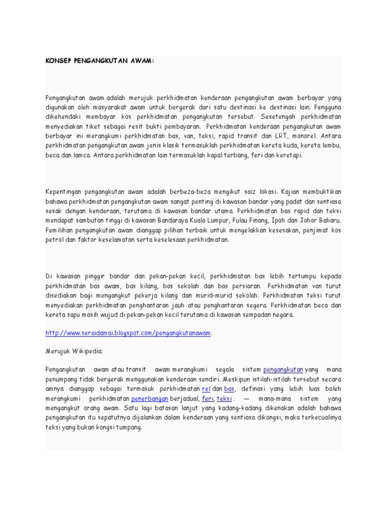 Semoga perkongsian bahan bahan rujukan panduan bahan pembelajaran dan pengajaran contoh contoh karangan sumber rujukan pt3 pentaksiran tingkatan 3 tingkatan 1 tingkatan 2 tingkatan 3 dalam post di blog bumi gemilang berguna dan dapat membantu para pelajar dan pengguna. Meskipun istilah istilah tersebut secara amnya dianggap sebagai perkhidmatan rel dan bas definisi yang lebih luas boleh merangkumi perkhidmatan penerbangan berjadual feri teksi dan sebagainya. Pengangkutan awam atau transit awam merangkumi segala sistem pengangkutan yang mana penumpang tidak bergerak menggunakan kenderaan sendiri. Hal ini mungkin kerana sektor pengangkutan di malaysia adalah satu sektor penting yang berkait rapat dengan ekonomi sosial dan politik dan wajid difahami dengan mendalam.
