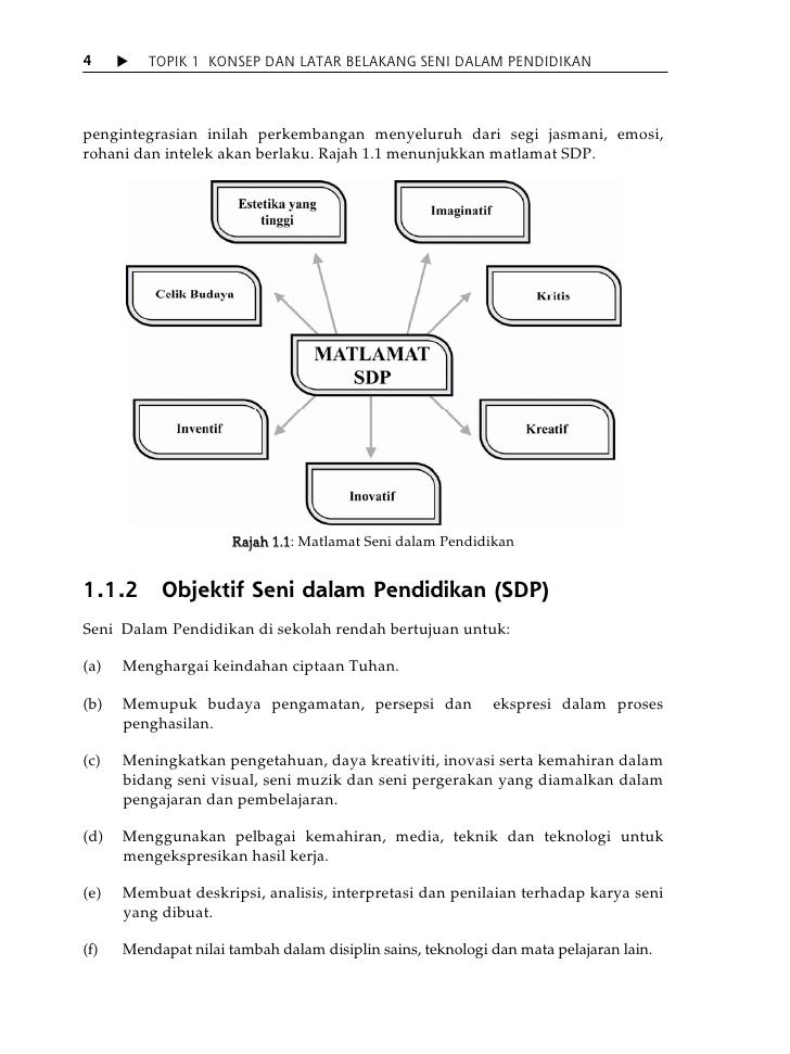 Topik 1 konsep dan latar belakang seni dalam pendidikan 5 g menghargai sumbangan dan pengaruh tokoh tokoh seni visual seni muzik dan seni pergerakan h menjadikan seni dalam pendidikan sebagai tunjang dalam kerjaya keguruan i menyedari dan menghargai suasana seni dalam persekitaran dan kaitannya dengan keselesaan hidup j membina jati diri ke arah pembentukan negara bangsa k.