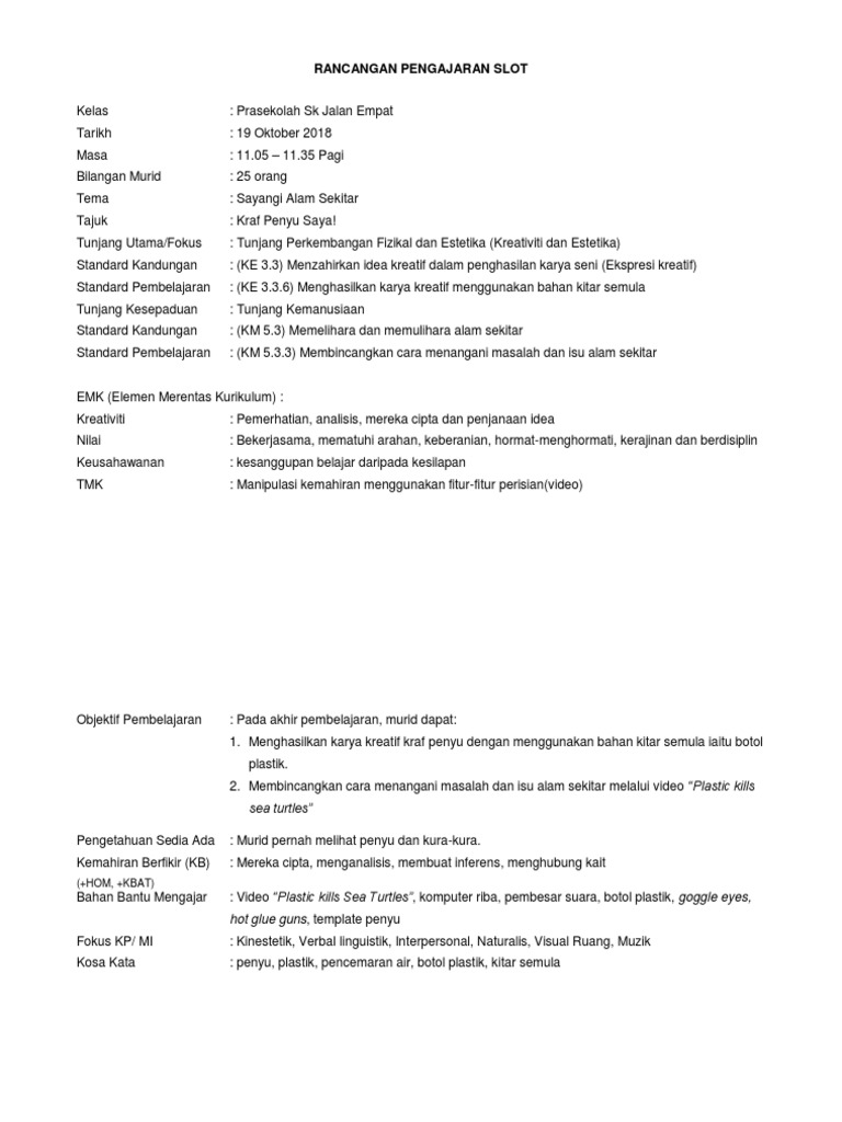 Hasil daripada program kitar semula ini kanak kanak akan dapat memahami konsep menjaga alam sekitar dan sedar tentang tanggungjawab sebagai ahli masyarakat dalam menyumbang kepada keindahan alam serta persekitaran sihat. Oleh itu ibu bapa harus meningkatkan kreativiti mereka sendiri dalam mencari jalan mencungkil kreativiti anak. I perkembangan fizikal dan estetika tunjang kreativiti ii tunjang fizikal dan estetika perkembangan fizikal standard pembelajaran utama. Tujuan aktiviti ini dijalankan bagi memupuk daya kreativiti dalam kalangan murid murid prasekolah.