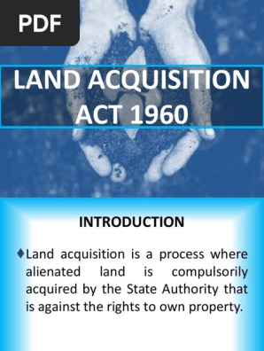 The petroleum and minerals pipelines acquisition of right of user in land act 1962 50 of 1962. The application of any land acquisition is deemed to have been withdrawn if. Land acquisition act 1960 revised 1992 1land acquisition laws of malaysia reprint act 486 land acquisition act 1960 incorporating all amendments up to 1 january 2006 published by the commissioner of law revision malaysia under the authority of the revision of laws act 1968 in collaboration with percetakan nasional malaysia bhd 2006 2. And to provide for matters incidental to or connected with the.