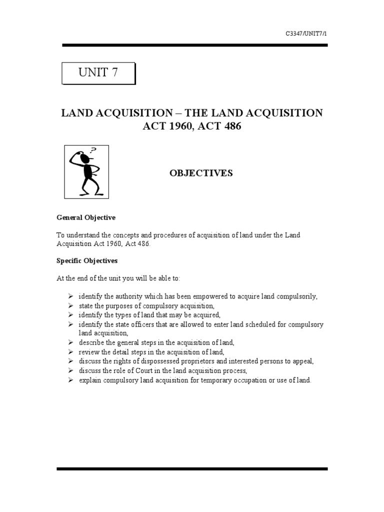 The requisitioning and acquisition of immovable property act 1952 30 of 1952. 3a matters to be considered by the state economic planning unit or committee etc. Land acquisition act 1960. This act may be cited as the lands acquisition act 1970.
