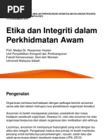 Sifat amanah telus bertanggungjawab dan ber khidmat demi kepentingan awam merupakan intipati kepada istilah integriti dan etika. Integriti adalah merupakan akhlak islami dan bertepatan dengan ajaran islam yang mesti dihayati oleh penjawat awam. Yab perdana menteri setiap dari kita ada peranan yg perlu dilaksanakan bagi membangunkan negara ini. Akauntabiliti menjalankan tugas dan.