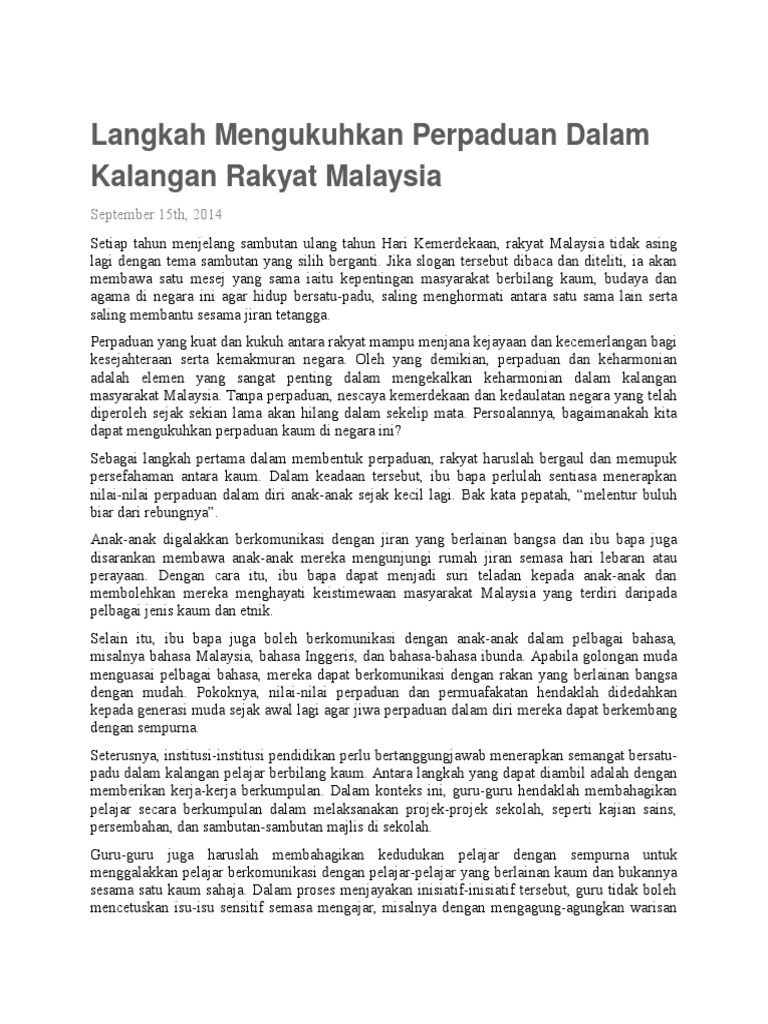 Menilai semangat perpaduan dalam kalangan masyarakat sarawak. Keunikan ini boleh dijadikan model keharmonian dan perpaduan kaum bagi malaysia. Pesta gawai dayak di sarawak yang diraikan untuk kegembiraan disambut meriah sekali di bandar bandar dan di desa desa dengan didahului oleh upacara miring dan genselan yang akan diikuti oleh hidangan lazat makanan tradisi seperti pansoh lemang nasi pulut minuman tradisi terutamanya tuak iaitu arak beras pulut persembahan tarian tradisi ngajat bermain main suara tradisi dan bersuka ria. Utama news sukan kukuh semangat perpaduan rakyat sarawak brunei. Menteri muda elektrik luar bandar datuk dr abdul rahman junaidi berkata walaupun pengaruh internet dapat memberi kesan positif kepada masyarakat tetapi ada pihak suka memuat naik berita tidak benar.