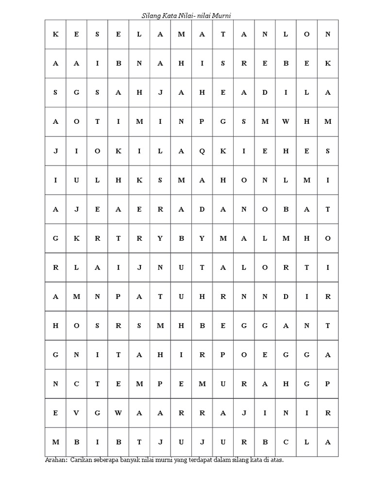 Nilai Murni Cari Perkataan Tersembunyi Pendidikan Moral