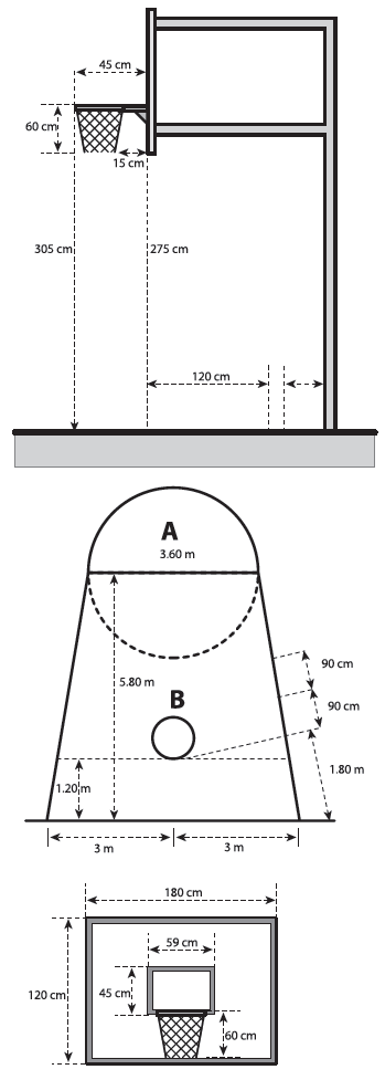 Saiz papan ini hendaklah 1 80 meter panjang dan 1 2 meter lebar. Separa 1 8 penuh 3 6. Garisan 3 pointer. Berikut ketentuan ukuran untuk setiap bagian dalam backstop unit.