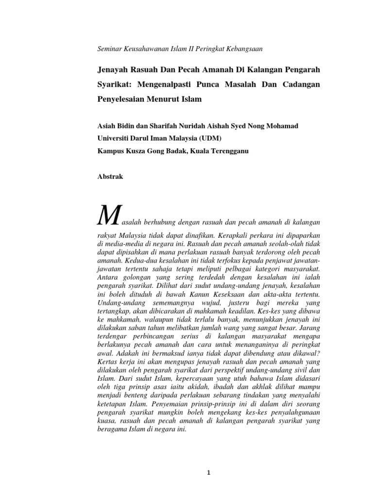 Pecah amanah di tempat kerja. Menurut rekod anda telah melanggar kod etika kerja yang telah ditetapkan syarikat iaitu kelewatan. Laporan rasuah oleh transparency international pada 2005 melaporkan bahawa malaysia telah jatuh 16 tangga dalam tempoh 10 tahun ini dari tempat ke 23 pada tahun 1995 ke tempat 39 pada tahun 2004. Jika bebanan kerja melebihi keupayaan maka pekerja berkenaan akan bekerja dalam keadaan tertekan. Menyedari akan hal ini maka tidak hairanlah pihak kerajaan bertungkus lumus dalam usaha membasmi peningkatan kadar gejala rasuah di negara ini.