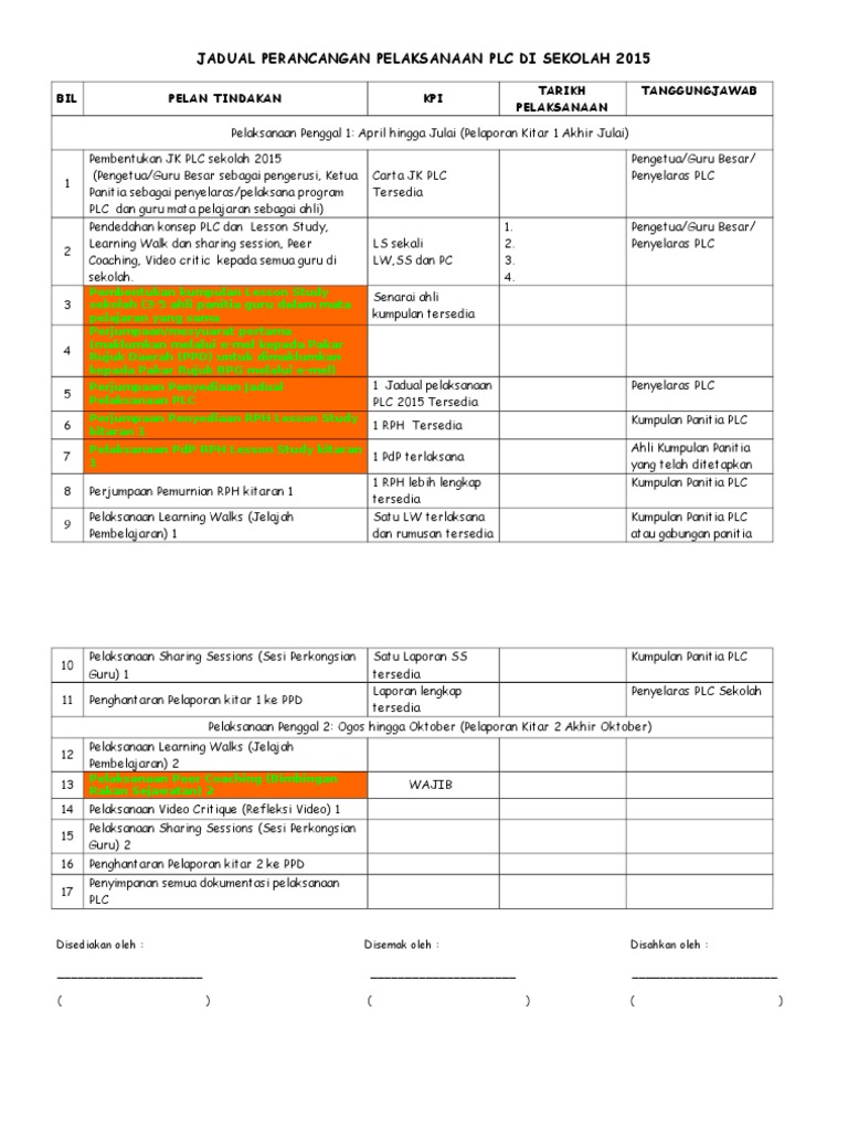 Strategi tips borang pelaksanaan plc. Plc dianjurkan untuk mengatur penambahbaikan pengajaran dan pembelajaran. Pelaksanaan plc professional learning communities melibatkan guru kepala sekolah pengawas sekolah tim penjaminan mutu pendidikan sekolah. Lesson study dalam bahasa jepun dikenali sebagai jugyoukenkyuu.