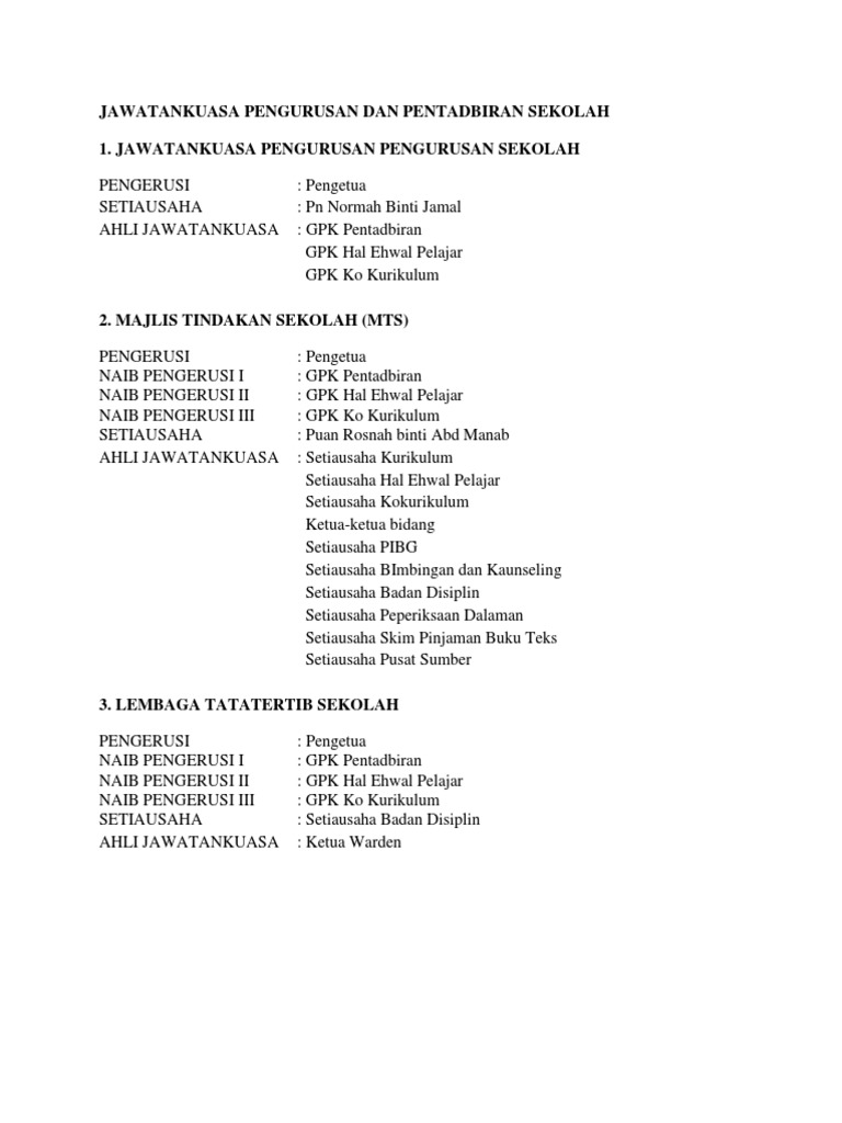 Noor rashid bin osman. 26 disember 2018 rabu masa. Dalam organisasi konsep pentadbiran dan pengurusan sekolah selalu digunakan dan saling bertukar ganti definisi pengurusan lebih kurang sama denganpentadbiran iaitu proses mengarah mengawal sesuatu institusi yang melibatkanperancangan di malaysia istilah pentadbiran lebih kerap digunakan kerana ia lebih memberatkan kepada perkhidmatan dan bukan kepada keuntungan walaubagaimanpun ramai. Berikut adalah organisasi bahagian pengurusan dan pentadbiran sekolah.