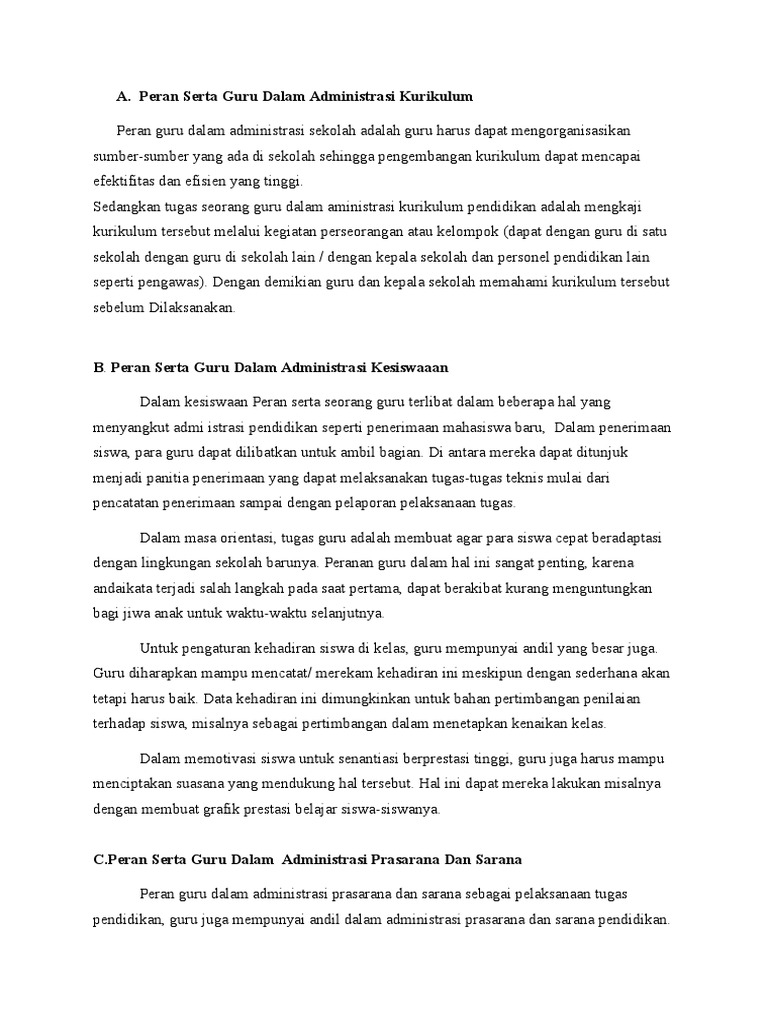Peranan guru dalam pelaksanaan kurikulum di sekolah. Kompetensi sosial dalam kegiatan belajar ini berkaitan erat dengan kemampuan guru dalam berkomunikasi dengan masyarakat di sekitar sekolah dan masyarakat tempat guru hidup sehinga peranan dan cara guru berkomunikasi di masyarakat diharapkan memiliki karakteristik tersendiri yang sedikit banyak berbeda dengan orang lain yang bukan guru h. Dalam fase ini guru diberi kewenangan untuk menyesuaikan kurikulum yang sudah ada dengan karakteristik sekolah dan kebutuhan lokal. Dalam keluarga guru berperan sebagai pendidik dalam keluarga family educator. Djam an satori dkk 2003.