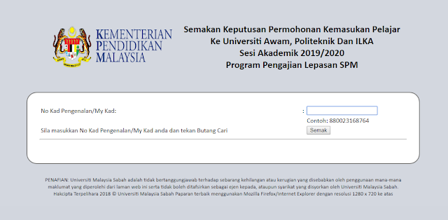 Permohonan upu sesi 2019. Membolehkan pengguna untuk menyemak status permohonan upu status kelayakan dan keputusan permohonan dan rayuan pemohon. Iklan permohonan kemasukan ke ua politeknik kolej komuniti dan ilka bagi program pengajian lepasan spm sesi akademik 2019 2020 akan disiarkan pada hari ahad sebanyak dua 2 kali iaitu pada 24 februari 2019 dan 24 mac 2019. E panduan e panduan menyediakan syarat kemasukan ke universiti awam institut pendidikan guru kolej matrikulasi politeknik kolej komuniti dan institut latihan kemahiran awam ilka. Tarikh penting upu online sesi 2020 2021.
