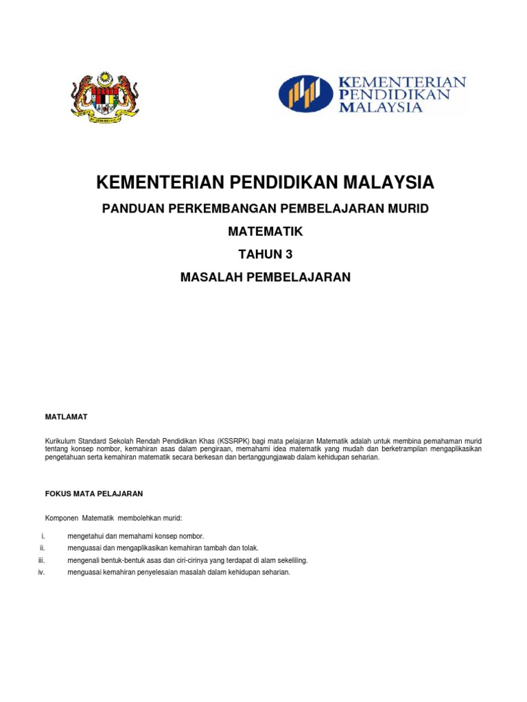 Pppm matematik tahun 3 panduan perkembangan pembelajaran murid.