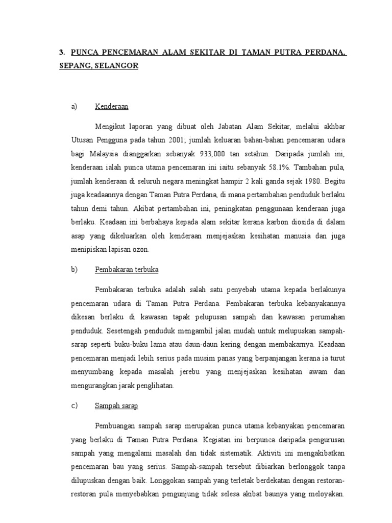 Kenderaan bermotor merupakan punca utama kepada isu pencemaran udara di bandaraya kuala lumpur 1 markah penggunaan kenderaan bermotor seperti kereta motor dan kapal terbang melepaskan asap kenderaan yang mengandungi gas berbahaya atau bertoksik seperti karbon monoksida ke udara 1 markah. Antara contoh pembakaran terbuka ialah pembakaran hutan sawah sawah padi dan juga pembakaran yang dilakukan di kawasan perumahan sehingga menyebabkan berlakunya jerebu. Aktiviti pembangunan dan perindustrian. Faktor atau punca punca pencemaran udara.