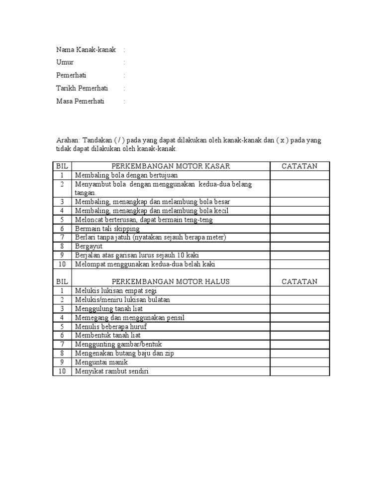 Dalam kajian ini juga pengkaji telah menggunakan temubual semi struktur. Panduan senarai semak ini akan memberi petunjuk perkembangan dan pertumbuhan kanak kanak yang normal. Senarai semak tingkah laku emosi kanak kanak hce2073 perkembangan sosioemosi kanak kanak dalam pendidikan awal kanak kanak. Malah ada juga kanak kanak yang lebih cepat dari petunjuk dalam instrumen senarai semak ini.