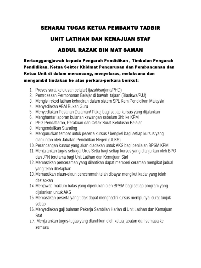 Senarai Tugas Pembantu Tadbir Perkeranian