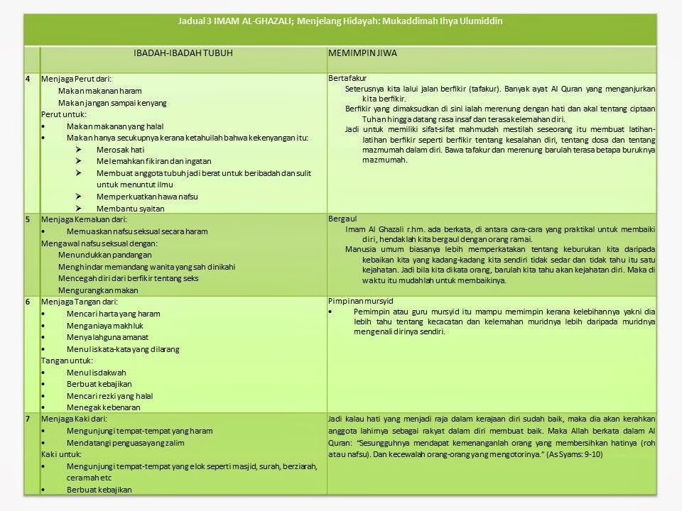 Ini menyebabkan kita lalai daripada menunaikan ibadah dan zikrullah. Imam al ghazali juga menggariskan sepuluh sifat mazmumah tercela di dalam kitab tersebut iaitu. Telah menggariskan 10 sifat mahmudah terpuji di dalam kitab arbain fi usuluddin. Yang terlebih afdal utama pada allah swt ialah orang yg banyak berlapar dan banyak tafakur berfikir sambil meneliti dan yang terlebih benci kepada allah ialah orang yang banyak makan banyak tidur dan.
